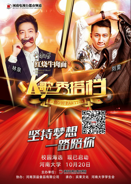 現(xiàn)在,給你機(jī)會(huì)show出自己!10月20日,由都市頻道和康師傅紅燒牛肉面聯(lián)合推出的《名嘴K歌秀》校園海選活動(dòng)將在河南大學(xué)啟動(dòng)并進(jìn)行首場(chǎng)選拔,在接下來(lái)的兩個(gè)月時(shí)間里,該活動(dòng)將走進(jìn)省內(nèi)六大高校,尋找最會(huì)唱歌的你。最終,本次活動(dòng)選拔出的優(yōu)秀選手可以和河南廣電全媒體的主持人搭檔演出,參與名嘴演唱會(huì),登上更大更炫的舞臺(tái),實(shí)現(xiàn)人生的音樂(lè)夢(mèng)想!