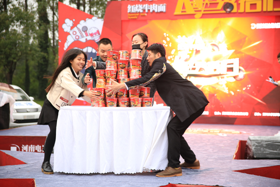 當(dāng)天的演唱環(huán)節(jié),涌現(xiàn)出了高音哥、清新姐等一眾實力唱將,而在游戲環(huán)節(jié)“康師傅都是我的”中,女生們可就厲害了,使出了渾身解數(shù),一位女生以一次抱得十一桶康師傅紅燒牛肉面的記錄登頂冠軍,連男生也甘拜下風(fēng)。