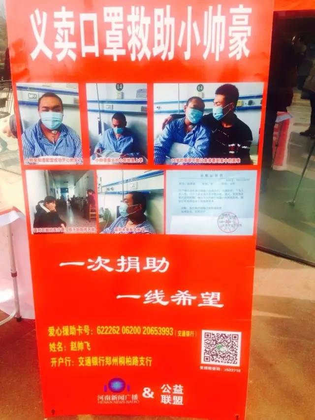 河南新聞廣播持續(xù)關(guān)注16歲白血病少年趙帥豪籌集50萬(wàn)元移植費(fèi)的進(jìn)展。由我們和公益同盟一起發(fā)起的口罩義賣(mài)活動(dòng)仍在進(jìn)行中。在花園路丹尼斯義賣(mài)點(diǎn),王女士帶著自己12歲的兒子柳義獻(xiàn)上了一份愛(ài)心。