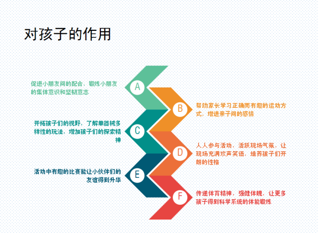 “趣味親子運(yùn)動趴”根據(jù)孩子年齡不同設(shè)置指標(biāo),由家長和孩子共同參與、相互協(xié)作完成,是一次從耐力到動手能力、反應(yīng)力到創(chuàng)造力,速度與平衡全面考量的一系列親子活動,從“歡樂親子跑”到“趣味體能大沖關(guān)”,不但提高幼兒的活動技能,開拓孩子們的視野,增加孩子們的探索精神,增強(qiáng)少年兒童的身體素質(zhì)的,又寓教于樂,有利于孩子們身心健康成長,同時讓家長們也了解正確而有趣的運(yùn)動方式,更好的增進(jìn)父母與孩子間感情。