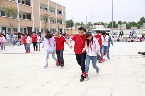 “加油,加油!”昨天,中牟黃店鎮(zhèn)中心小學(xué)的學(xué)生和志愿者們一起在廣播的音樂下玩著背靠背、兩人三足的游戲,大家玩得興高采烈。而這樣普通的游戲,這個學(xué)校的很多孩子是第一次玩兒。
