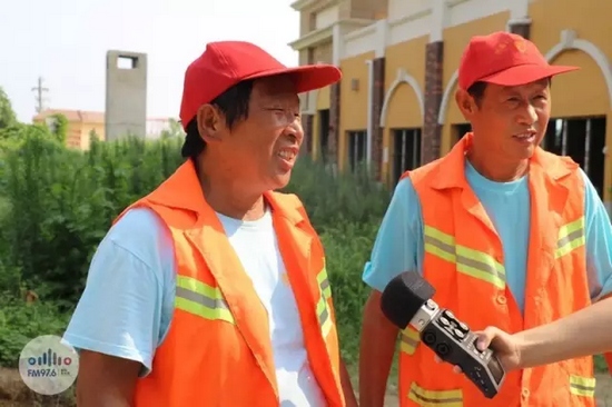 當(dāng)我們?nèi)ソo環(huán)衛(wèi)工人送西瓜的時(shí)候,他們正在烈日下清理街道,上午十一點(diǎn)的陽(yáng)光,已經(jīng)足夠讓人汗流浹背。