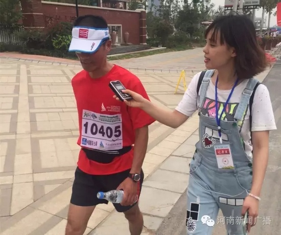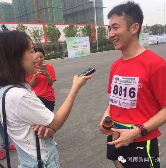 僅僅過了2小時20分,終點迎來第一位沖向終點的高先生,氣喘吁吁的他在接受我們采訪時依然腳步穩(wěn)健。