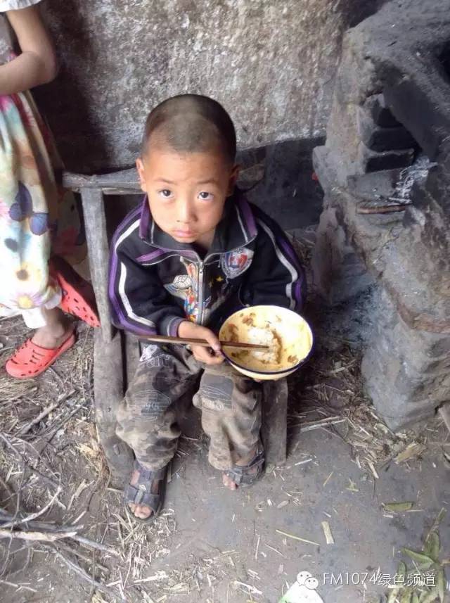 去的時候正趕上他們吃午飯,這位小朋友吃的是米飯,跟家人吃的不一樣。這碗米飯是鄰居送過來的,因為家里窮,幾乎沒有錢去買米,能吃上米飯對他們來說是件很奢侈的事情!