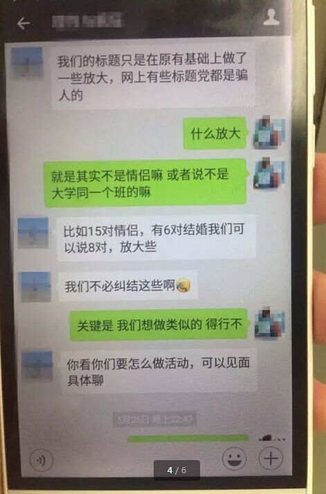 面對(duì)記者對(duì)“一個(gè)班15對(duì)情侶”提出的諸多疑問(wèn),對(duì)方直接回答,“媒體報(bào)道說(shuō)有,就一定是這么回事?!薄拔覀儾槐卦偌m結(jié)這些?!彼髞?lái)承認(rèn)有些標(biāo)題在原有的基礎(chǔ)上做了一些放大,“比如15對(duì)情侶,有6對(duì)結(jié)婚我們可以說(shuō)8對(duì),放大些?!?/font>