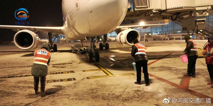 機(jī)場(chǎng)信息:早上七點(diǎn)半,鄭州機(jī)場(chǎng)仍在降雪,經(jīng)全力工作,南跑道正在安排航班起降,但放行速度較慢。北跑道正在除冰,早上出港航班均有不同程度延誤。請(qǐng)廣大乘客拔打96666問(wèn)訊,為了保障旅客的安全和順利出行,機(jī)場(chǎng)各個(gè)崗位徹夜無(wú)眠工作。