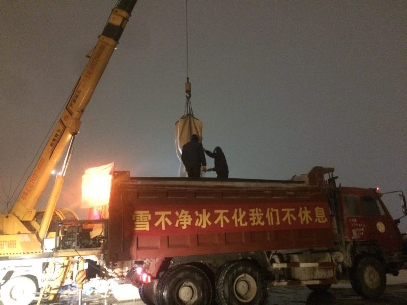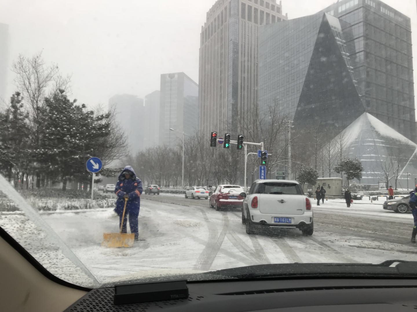 鄭州機(jī)場(chǎng)緊急啟動(dòng)除雪保障預(yù)案,機(jī)場(chǎng)各崗位徹夜未眠連續(xù)工作,對(duì)飛機(jī)跑道、滑行道、停機(jī)坪和對(duì)機(jī)場(chǎng)地面交通道路進(jìn)行撒鹽、掃雪等一系列除冰雪保障工作,以保障廣大旅客安全出行。只見(jiàn)大的除冰機(jī)上寫著:雪不凈冰不化我們不休息!