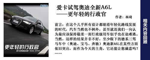 編輯點評:新一代奧迪A6L外觀更加年輕,目標(biāo)用戶群會進一步下探,而A6L更大的改變在與內(nèi)飾上,更寬敞的空間,更豪華的內(nèi)飾,更加具有科技含量的電子配置。動力總成和四驅(qū)系統(tǒng)上變化較少,好在奧迪A6L的用戶群對此并不十分關(guān)心。頂著“第一官車”的光環(huán),有政府采購做保障,奧迪A6L并不愁銷路,不過奧迪希望能逐步降低對公務(wù)市場的依賴,以降低采購政策改變所帶來的風(fēng)險。