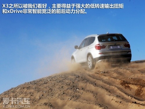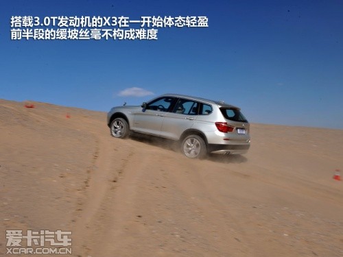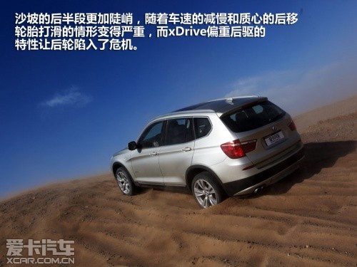 或許是奧迪Q5完成測試的過程比較順利,我們對接下來即將登場的寶馬X3也普遍比較看好,這或許就是思維慣性帶來的固定套路吧。然而在實(shí)地測試過程中,這臺X3攀爬沙丘的過程卻沒有表現(xiàn)出它在公路上所煥發(fā)出的霸氣。400?!っ椎淖畲笈ぞ卦诔鞘械缆分?,甚至在高速公路上都是無與倫比的,但移步至眼前狂風(fēng)大作的沙丘,這400?!っ椎呐ぞ貏t像是心有余而力不足的悲情英雄。