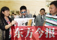 “為啥還配發(fā)有眼鏡?”不少人對(duì)東方今報(bào)發(fā)行員工手中的眼鏡比較感興趣。當(dāng)?shù)弥獔?bào)紙是3D的,戴上眼鏡,“樓”就站在報(bào)紙上時(shí),不少客商紛紛戴上眼鏡體驗(yàn)一把。