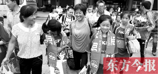 昨天下午3點,在新鄭國際機(jī)場大廳等待已久的隊員家長們,終于迎來臨潁縣女子足球隊的小隊員們。當(dāng)家長們看見隊員從大廳里整齊走出來,都圍了上去,紛紛念叨著“瘦了,黑了”。李女士說,大約有7名小隊員的家長來鄭州接機(jī),幾乎所有的孩子河南省都沒出過。隨后,小隊員和家長們陸續(xù)坐上了趕往河南建業(yè)球場的大巴。