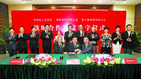 河南日?qǐng)?bào)??谟?(記者楊 凌)河南開放合作再譜新篇章。3月31日下午,河南省人民政府、海航集團(tuán)有限公司、富士康集團(tuán)有限公司戰(zhàn)略合作協(xié)議簽字儀式在海口舉行。