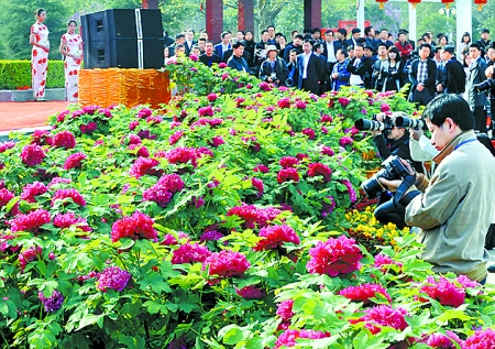 目前,洛陽市牡丹種植面積已達7萬多畝,其中觀賞牡丹1萬余畝,品種1200多個,是名副其實的“牡丹花都”。為滿足不同游客的觀賞需求,今年牡丹文化節(jié)期間,洛陽市對各牡丹觀賞園進行了整體規(guī)劃,并通過技術手段人工調控花期,確保4月5日至5月5日市區(qū)、市郊、南部山區(qū)的牡丹形成早、中、晚次第開放的格局。