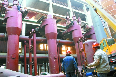 3月16日,河南煤化安化集團(tuán)公司造氣系統(tǒng)16臺新型節(jié)能造氣爐技術(shù)改造項目正在緊張施工,項目全部投產(chǎn)后,每噸合成氨耗煤有望下降10%以上,年增經(jīng)濟(jì)效益5000萬元。 李希軍 攝