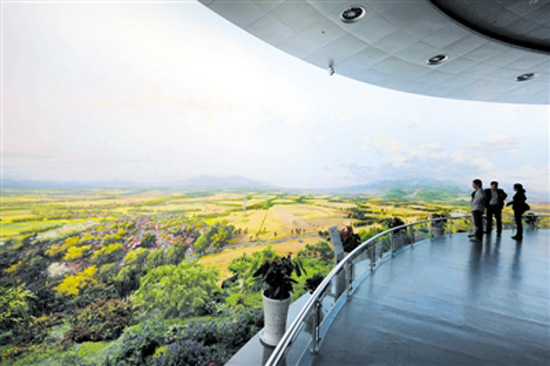 3、四層《錦繡中原》全景圖,給你全方位展示全省十八個省轄市的山川原野、城鄉(xiāng)風光、名勝古跡、人文景觀,在這幅宏偉畫卷里,讓你領略什么是歌天頌地、富于創(chuàng)新、震撼人心,中原大地有著怎樣的遠古、現(xiàn)代和未來。