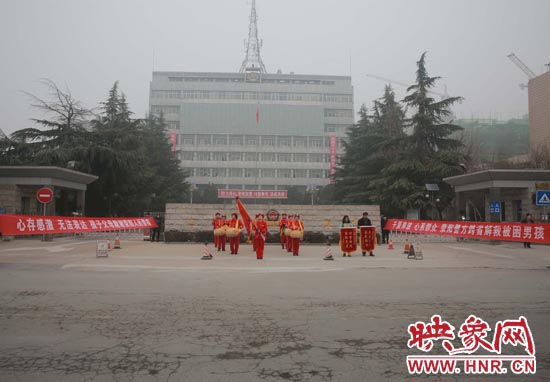 為了表達(dá)對(duì)滎陽(yáng)警方的感激之情,20日上午8時(shí)許,盧女士就和家屬一起來(lái)到滎陽(yáng)市公安局大門(mén)口,敲鑼打鼓地舉著兩面錦旗表示感謝。映象網(wǎng)記者看到,在公安局大門(mén)兩側(cè),有兩個(gè)紅色條幅格外顯眼,“千里奔波,心系群眾,滎陽(yáng)警方跨省解救被困男孩”,“心存感激,無(wú)法表達(dá),孩子父母跪謝滎陽(yáng)人民警察”。