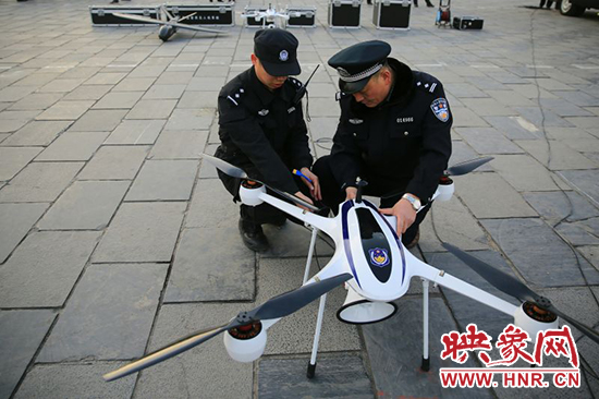 滎陽市公安局視頻監(jiān)控中心主任張海斌說,無人機(jī)可進(jìn)行空中視頻巡查,宏觀了解市區(qū)道路治安交通情況,并把偵察到的情況實時傳輸?shù)降孛嬷笓]中心,指揮員對整體情況進(jìn)行研判,以便及時下達(dá)指令,就近安排警力處置。