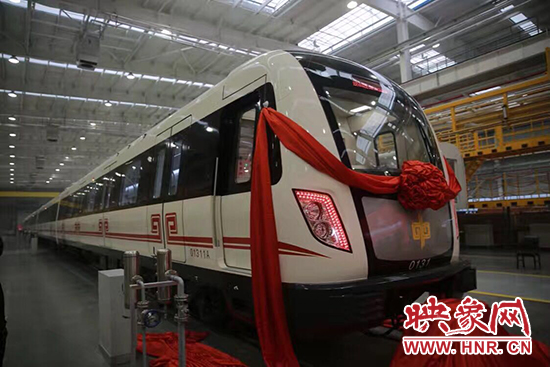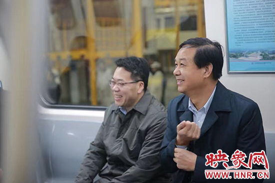 “滎陽(yáng)造”首列地鐵列車正式下線后,滎陽(yáng)市委書記宋書杰(右一)坐上列車參觀。