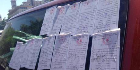 記者看到,貼在車上的罰單都是當(dāng)天貼的,看樣子不像是惡作劇,罰單上還印有公章,顯示“西安市公安局交通警察支隊(duì)”。