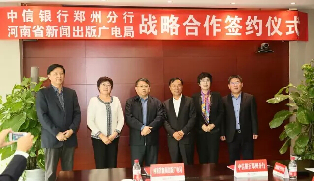 中信集團與省廣電局有著悠久的合作歷史和良好的合作基礎(chǔ),早在2006年,中信集團作為戰(zhàn)略合作伙伴入股河南有線電視網(wǎng)絡集團有限公司,與省廣電一道,為整合全省有線電視網(wǎng)絡、推進有線電視數(shù)字化等作出了積極的貢獻。本次中信銀行鄭州分行與省廣電局簽署戰(zhàn)略合作協(xié)議,中信銀行鄭州分行將依托中信集團的綜合金融服務平臺優(yōu)勢,集中優(yōu)勢資源,為省廣電局提供一攬子、全方位金融服務,支持省廣電局在媒體融合發(fā)展、云計算和大數(shù)據(jù)、電子商務、跨境E貿(mào)易、文化地產(chǎn)等新興產(chǎn)業(yè)領(lǐng)域持續(xù)做大做強,助力省廣電局打造中西部地區(qū)實力最強、規(guī)模最大并具有很強傳播力、公信力、影響力的新型媒體集團。