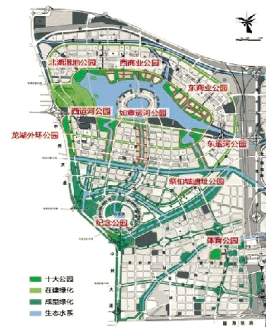 龍湖區(qū)域作為東區(qū)建設的主戰(zhàn)場,記者昨日看到此次建成的10個公園有七個落戶其中,分別為東運河公園、西運河公園、如意中央公園、北湖濕地公園、東商業(yè)公園、西商業(yè)公園、龍湖外環(huán)公園。