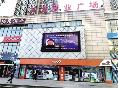 在二七轄區(qū)的一些小區(qū)及升龍廣場、金博大廣場等處,記者發(fā)現(xiàn)這些地方的LED屏幕每天都在滾動播放著欠錢“老賴”,公布的老賴名單中包含姓名、大頭貼照片、身份證號、家庭地址、執(zhí)行案號、執(zhí)行標(biāo)的及失信情形等信息。
