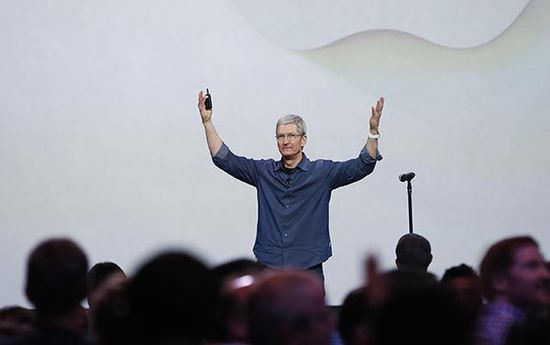 蘋果總裁庫克在發(fā)布會上發(fā)布iPhone 6、iPhone 6 Plus和Apple Watch