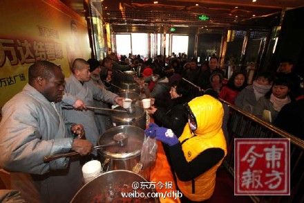 今早9點(diǎn),大學(xué)路二七萬達(dá),聚集上千人,少林寺免費(fèi)施粥,三天熬制兩萬份。不少市民早上7點(diǎn)來排隊,提著餐盒保溫桶大碗,現(xiàn)發(fā)現(xiàn)喝。大早上一碗熱乎乎的臘八粥下肚,透心暖。現(xiàn)場人員還在源源不斷增加中。今天你喝臘八粥了嗎?