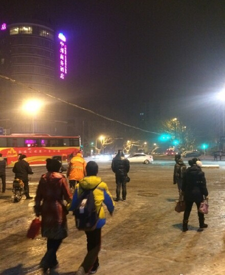 雪停了,但是路上的雪被車碾軋之后比較光滑。@大河寒江雪 :南陽(yáng)路快速公交站,等了半小時(shí)沒(méi)見(jiàn)一輛公交。@清qing茶:桐柏路農(nóng)業(yè)路交叉口已經(jīng)有兩輛公交車因路滑橫到馬路上了??傊?,出門不管是開車還是騎車還是步行都要千萬(wàn)小心!遲到不要緊,安全才第一!