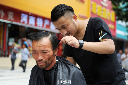 從7月21日開始,一位名叫紅濤的理發(fā)師,每逢周二在鄭州街頭免費為流浪人員理發(fā),他希望用此項行動呼吁大家關注街頭流浪人員群體。紅濤說,他還打算免費為農民工等群體理發(fā),讓他們感受到社會的溫暖。