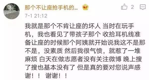 7月1日,該男子發(fā)微博稱,他原本收拾耳機(jī)準(zhǔn)備讓座的,這時(shí)大媽就開(kāi)始說(shuō)他這不是那不是,說(shuō)得他很氣憤,就賭氣不讓了。
