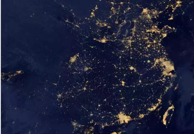 這份圖上,最閃亮的兩部分區(qū)域分別是珠三角和長三角,這也是中國目前最為成熟的兩大城市群,而作為傳統(tǒng)三大城市群之一的京津冀除了北京、天津之外,其他都呈散點排列,至于新晉的中原等城市群,規(guī)模上還不明顯。