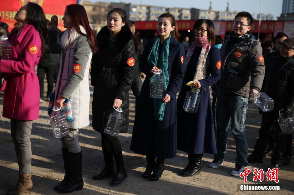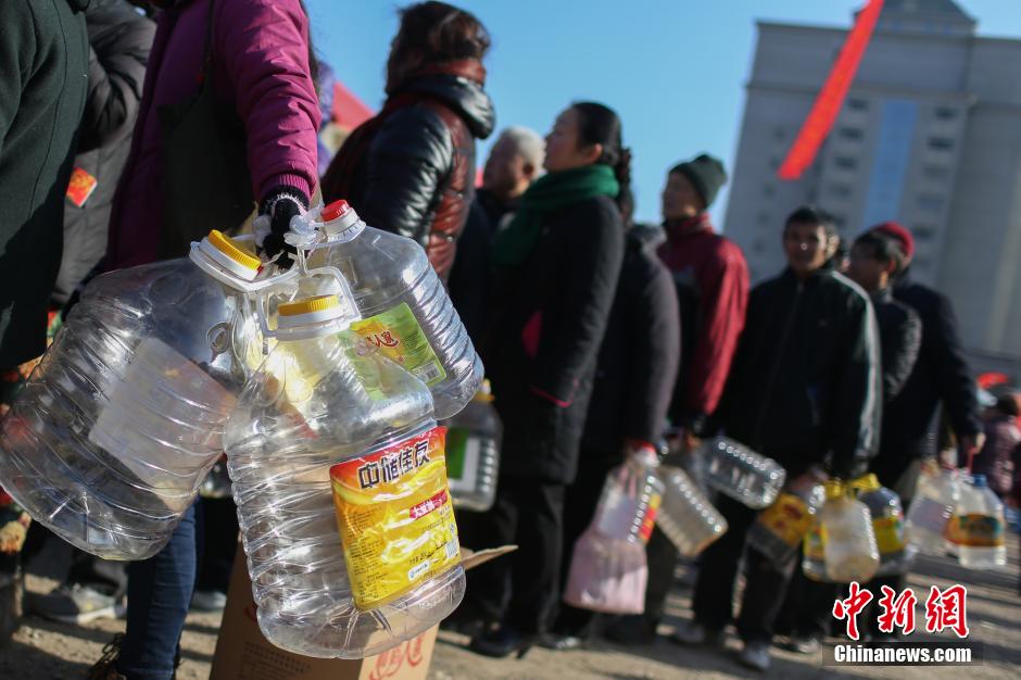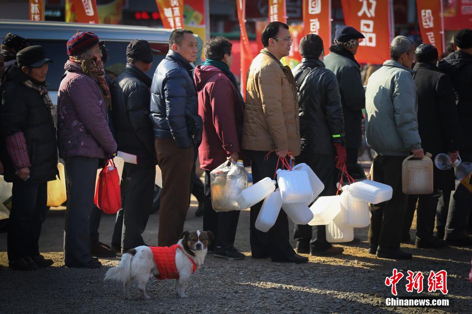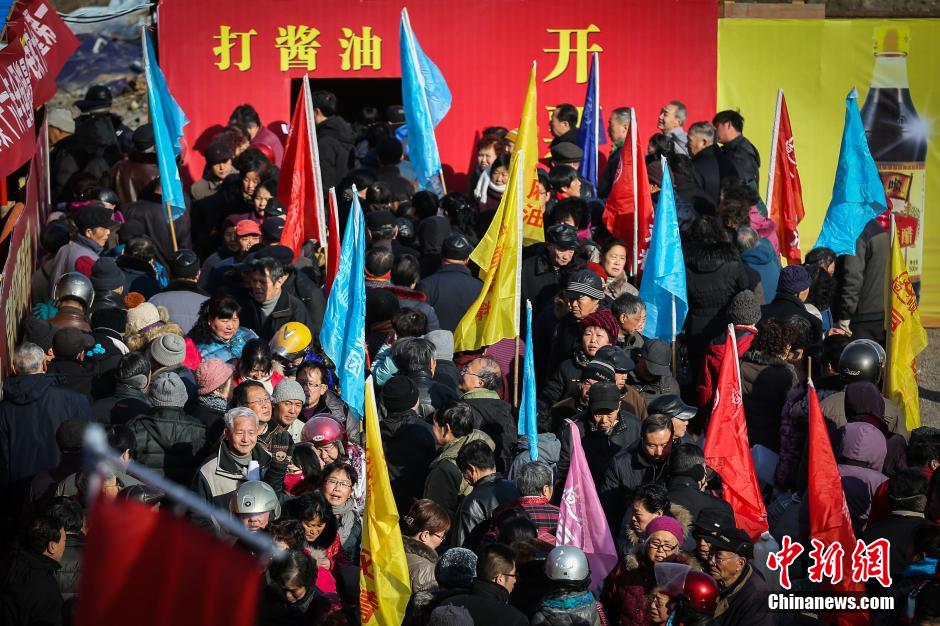 2月8日,江蘇鎮(zhèn)江一家百年老字號企業(yè)設立臨時供應點,為排隊前來的市民免費“打醬油”。每年春節(jié)前排隊“打醬油”是當?shù)孛癖娨呀浹永m(xù)了20多年的習慣,打了醬油,春節(jié)就有了年味。據(jù)介紹,今年打醬油時間從2月8日至16日,預計將有上萬人前往排隊“打醬油”。中新社發(fā) 泱波 攝