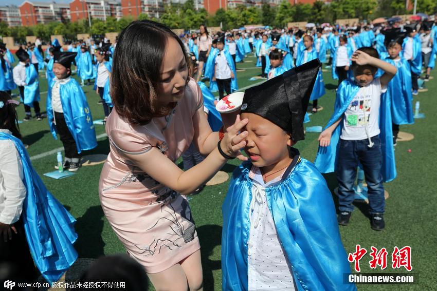 當(dāng)?shù)貢以谌雽W(xué)儀式上為一年級(jí)學(xué)生“點(diǎn)朱砂啟智”。 圖片來源:CFP視覺中國