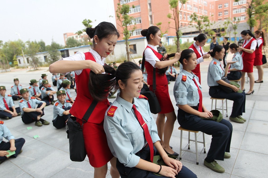 2015年9月17日,鄭州航院的“準空姐”們正在軍訓(xùn)。