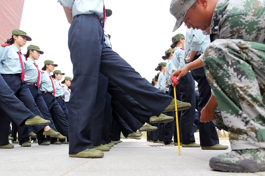在大家普遍的印象里,學(xué)生軍訓(xùn)主要就是練隊列、踢正步等,最多還有軍體拳、步槍射擊。昨天上午,記者在鄭州航空工業(yè)管理學(xué)院軍訓(xùn)現(xiàn)場發(fā)現(xiàn),該院在站軍姿、踢正步等軍訓(xùn)項目上,引入卷尺、純凈水瓶等“裝備”,而且為“準空姐”訓(xùn)練的課目中,還增加了如何盤發(fā)等項目。