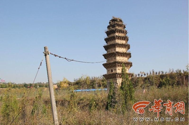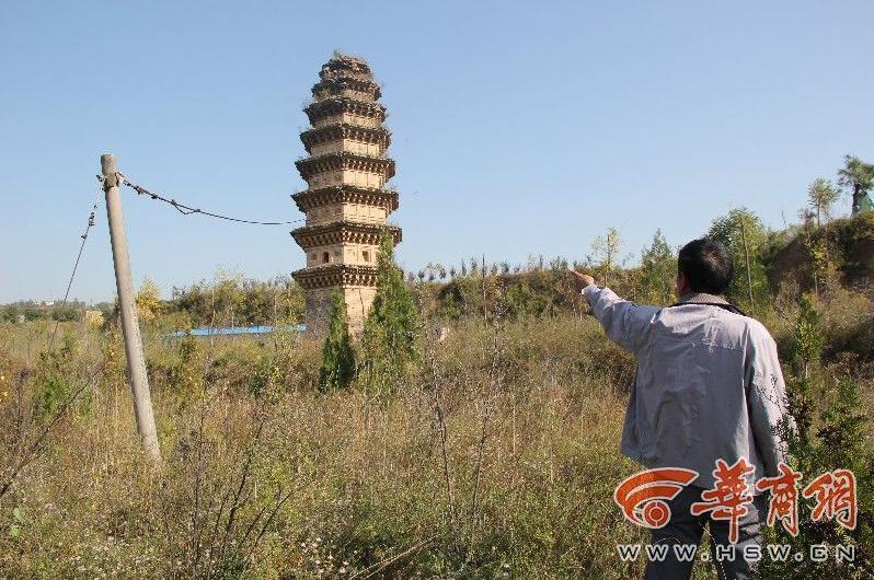 12日,住在離塔不遠(yuǎn)處的村民趙先生告訴華商報(bào)記者,在他的印象中,這座塔發(fā)生傾斜已經(jīng)有20多年了,大約在2005年前后。銅川新區(qū)管委會(huì)的工作人員在塔身上系上了一根鋼索,目的是為防止塔身繼續(xù)傾斜?!摆s緊把這塔保護(hù)一下,再不保護(hù)這塔可能就沒(méi)有了。”趙先生說(shuō),除了傾斜、風(fēng)蝕,導(dǎo)致塔體破壞外,偶爾還有盜墓賊光顧,他們?cè)谒車蛄撕脦讉€(gè)盜洞,這也加速了塔的破壞。
