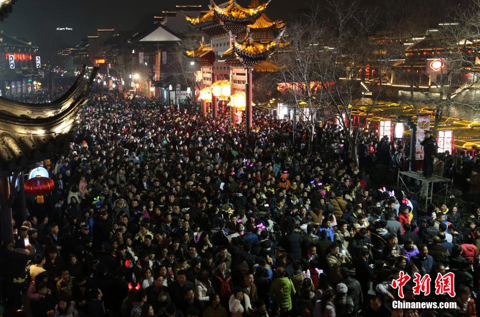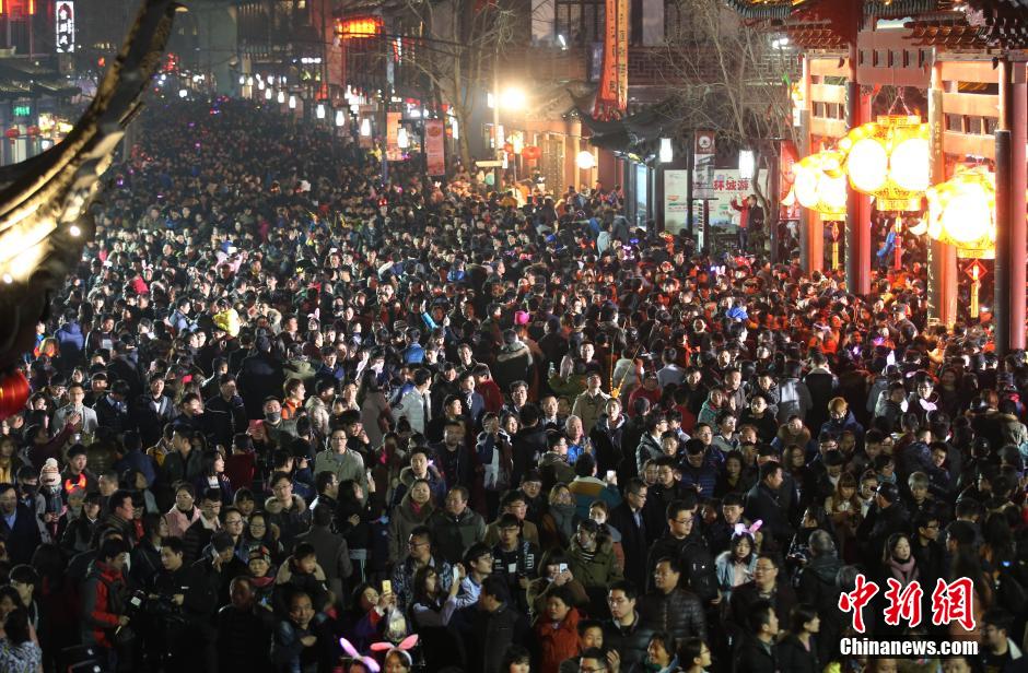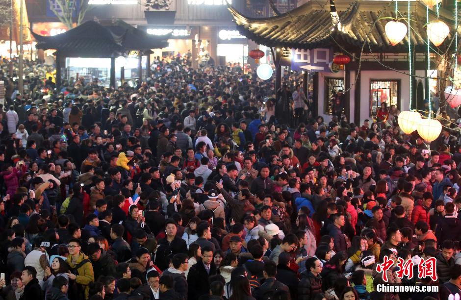 2月22日晚,南京夫子廟廣場上人山人海。當日是元宵節(jié),數(shù)十萬市民和游客涌進南京夫子廟景區(qū)內(nèi)欣賞秦淮燈會,瞬間開啟“人從眾”模式。秦淮燈會又稱“金陵燈會”,是流傳于南京地區(qū)的特色民俗文化活動,主要在每年的春節(jié)至元宵節(jié)期間舉行。 中新社記者 泱波 攝