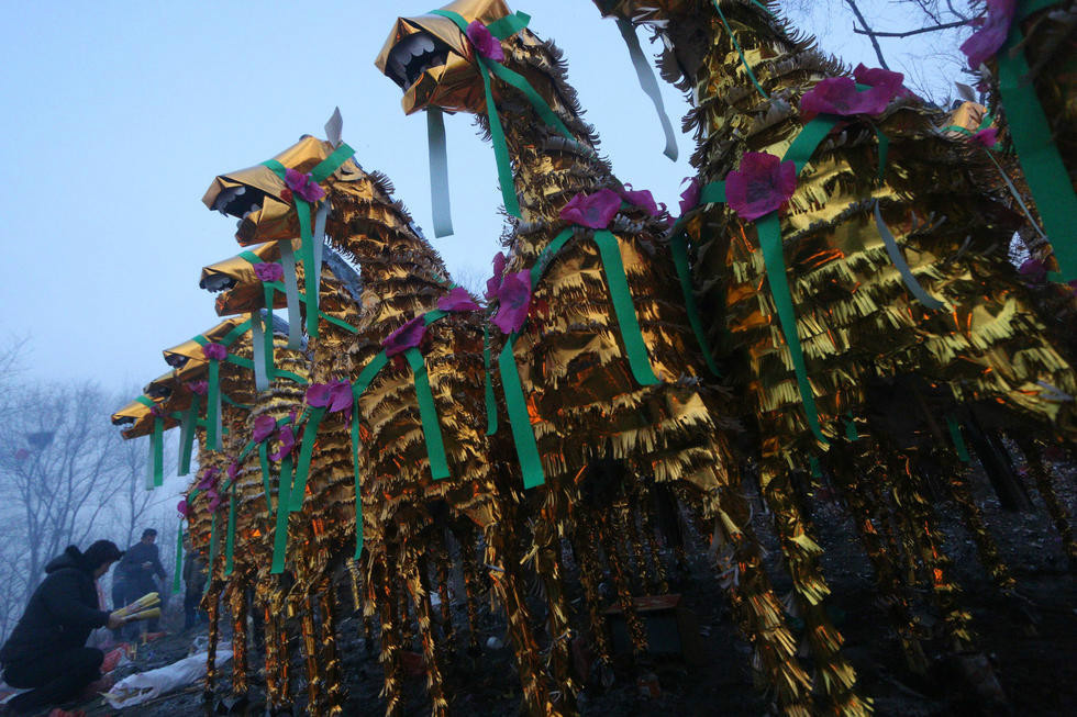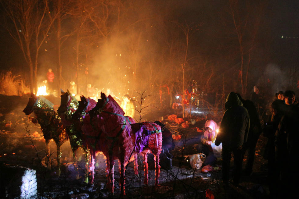 2016年2月23日凌晨,山東省濱州市惠民縣小霹靂莊,宋代古冢牛保冢上一年一度的正月十六祭祀活動(dòng)正式開(kāi)始,方圓百里萬(wàn)余百姓陸陸續(xù)續(xù)趕來(lái)祭祀,以求風(fēng)調(diào)雨順,家和事興。多種祭祀用紙馬先后被抬上祭壇引燃,化作火龍直沖云天,數(shù)量足有數(shù)千匹之多,場(chǎng)面壯觀(guān)且奇異,親臨現(xiàn)場(chǎng)宛若置身神鬼大片,令人印象深刻。