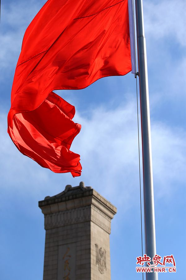 人民英雄紀(jì)念碑與紅旗遙相呼應(yīng) 段晉哲/圖
