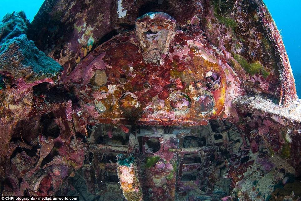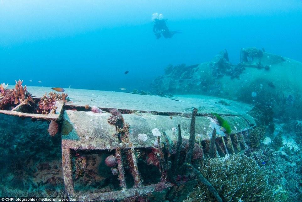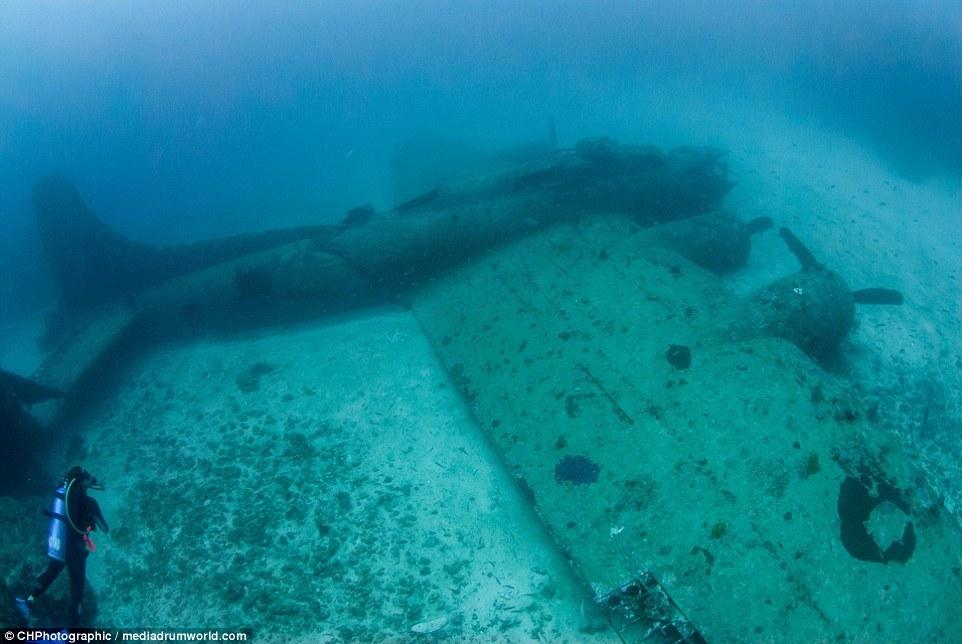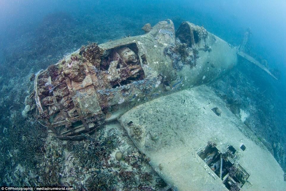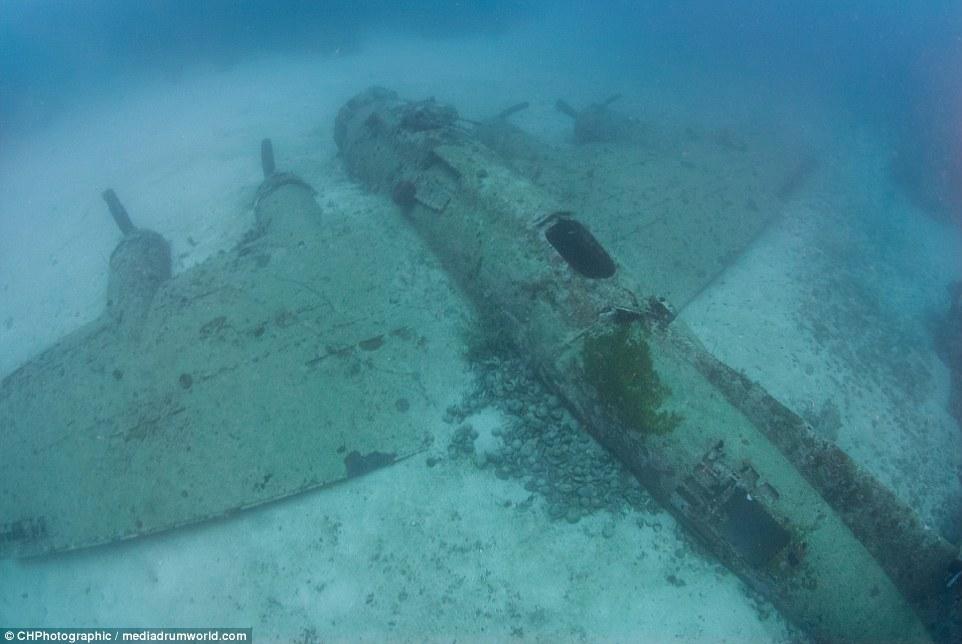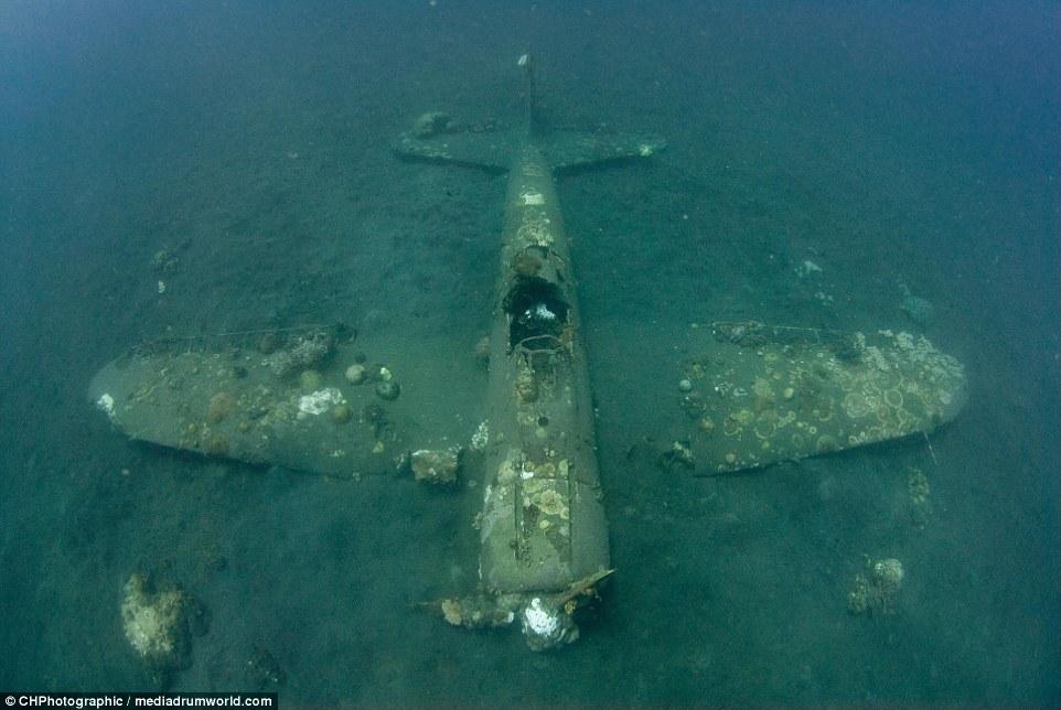 “當(dāng)我穿過珊瑚和海面看這架飛機(jī)的時候,我十分震驚,它居然這么完好的保存著,機(jī)體的完整存在讓人相信這是真實的戰(zhàn)斗機(jī)。“克里斯托弗說?!澳憧匆娝o置在那里,有一種時間停止的感覺?!?/p>