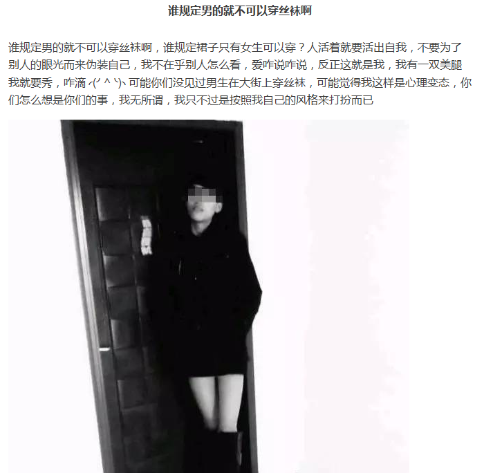 好吧,小編還是第一次見(jiàn)到這位網(wǎng)紅,難免心情有些小激動(dòng)。畢竟每個(gè)人都有一顆愛(ài)美的心和追求美的權(quán)利。只是這位小伙很“勇敢”的表達(dá)出了自己內(nèi)最深處的想法和最真實(shí)真是的自我。對(duì)此,小編只想說(shuō):請(qǐng)收下我的膝蓋!實(shí)在是佩服佩服!最后,也祝愿這位小伙早日找到能夠陪伴自己相愛(ài)一生的伴侶。
