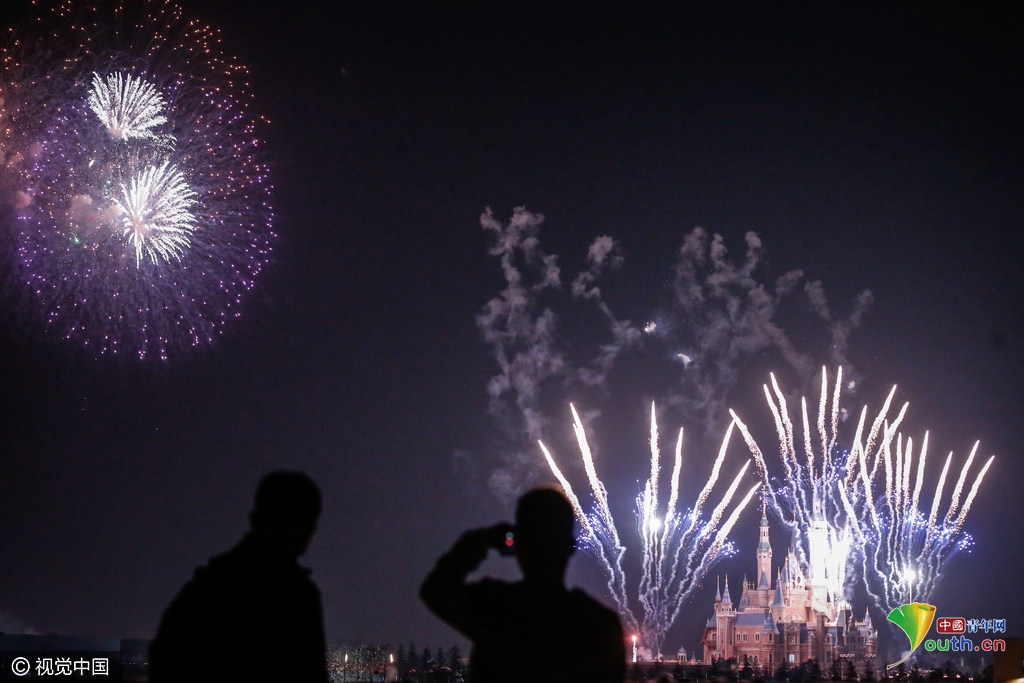 2016年3月28日晚,上海迪士尼樂園進行了第一次煙花試放。晚上9時許,兩道明亮的煙火在人們的歡呼中劃破天際。在隨后的27分鐘內,10余組姿態(tài)各異的煙火在空中依次綻放,萬千煙花“噴薄”而出,迪士尼城堡在煙火的照射下清晰可見。