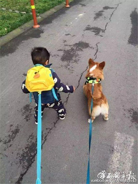 “每天都牽了繩的,就今天早上鬼使神差沒有拉繩子,就出了這種事。”對李女士一家來說,TOTO的死是一個巨大的悲痛,“我是懷孕的時候養(yǎng)的TOTO,懷孕生子都沒有把它送過人。它是和我兒子一起長大的。”圖為TOTO和小主人的照片。