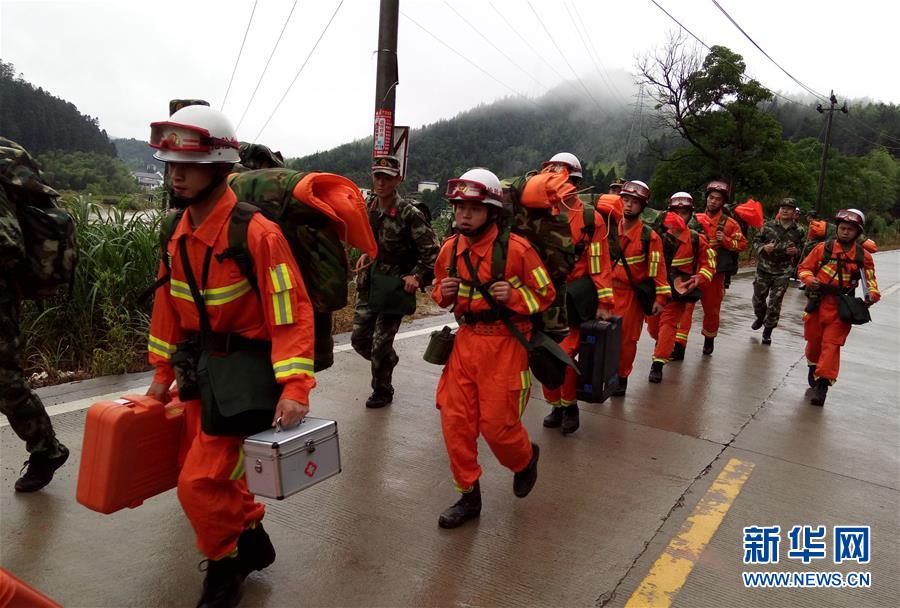5月8日,由于當(dāng)?shù)夭糠值缆诽?,武警水電二總?duì)六支隊(duì)官兵徒步馳援福建泰寧山體滑坡現(xiàn)場(chǎng)。