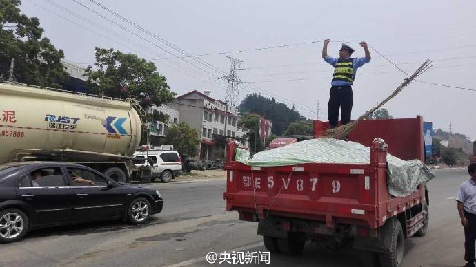 近日,在湖北宜昌一路段,電信光纜被風(fēng)刮斷,導(dǎo)致道路擁堵。交警董金橋?qū)⒐饫|奮力托起,留出空間保障車輛通行。一個多小時后,電信工作人員趕到搶修,直到線纜復(fù)位,董金橋才放下手臂休息。 央視記者 魏軼 圖片來源:央視新聞官方微博