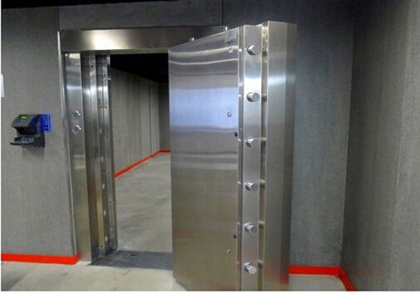 金庫(kù)的墻壁是25厘米厚的鋼筋混凝土,其中有10毫米的夾層,同樣防火防爆防鉆。