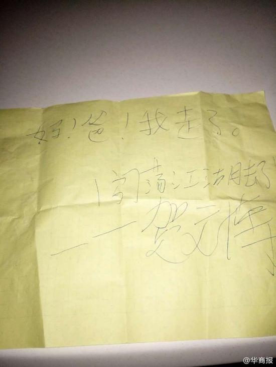 據(jù)賀先生介紹,他是清澗人,在榆林草海則附近打工,5月24日15時(shí)左右,賀先生的妻子回到在草海則租房中看到,家里有被翻動的痕跡,剛在家中衣服口袋里的1000元錢不見了,桌子上放了一張紙條,上面是兒子賀文博的字跡:“爸!媽!我走了,闖蕩江湖去了――賀文博”。