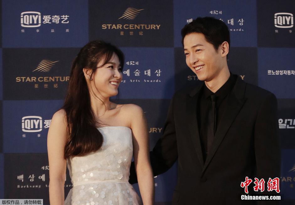 當(dāng)?shù)貢r(shí)間6月3日,韓國(guó)年度電視、電影盛事“第52屆百想藝術(shù)大獎(jiǎng)”在韓國(guó)首爾的慶熙大學(xué)登場(chǎng),宋仲基和宋慧喬憑借《太陽(yáng)的后裔》一舉拿下人氣大獎(jiǎng)。宋仲基更在臺(tái)上感動(dòng)告白搭檔宋慧喬“謝謝在我身邊的宋慧喬”。