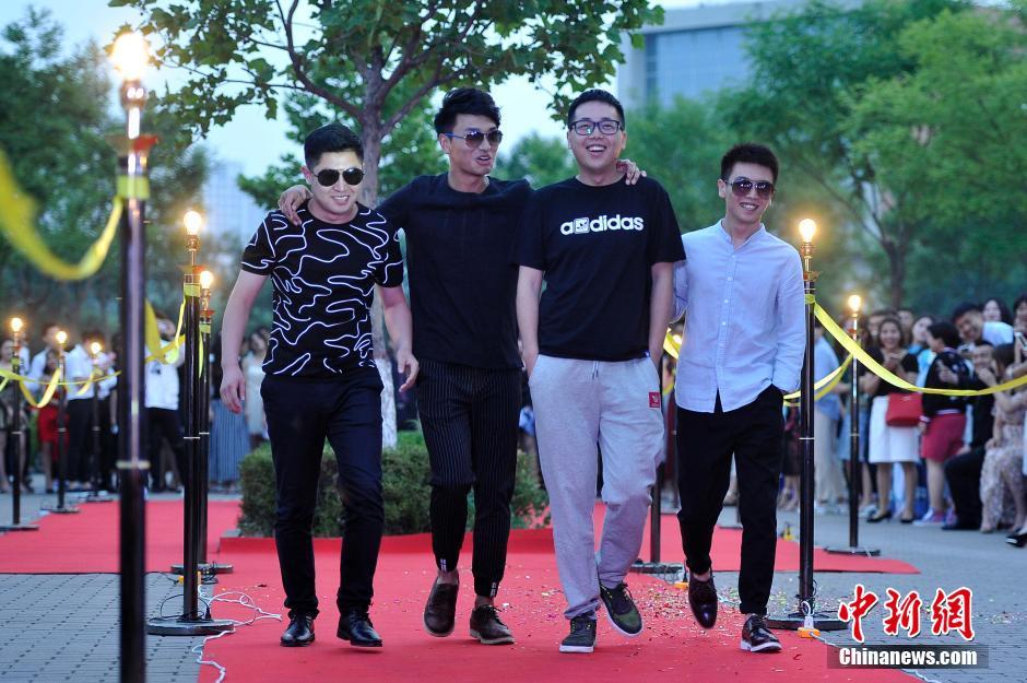 6月3日晚,山西大學美術(shù)學院畢業(yè)典禮,大學畢業(yè)生通過紅地毯走進會場,學弟學妹們夾道歡迎。當畢業(yè)生情侶一起走秀時,引起學弟學妹們一陣尖叫。韋亮 攝